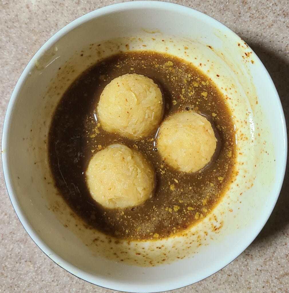 In a bowl, mix eggs, seasoning of choice and set aside. Deep the potato balls into the egg mixture and coat.