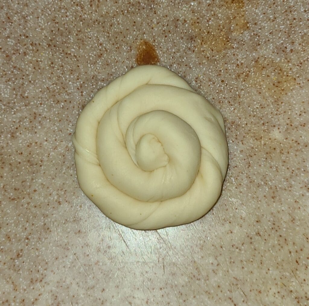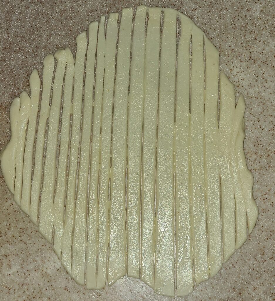 Rollout into 35cm, mix butter and oil then brush on the rolled out dough.