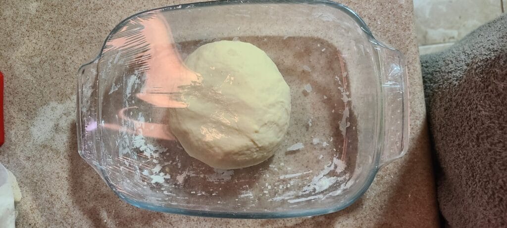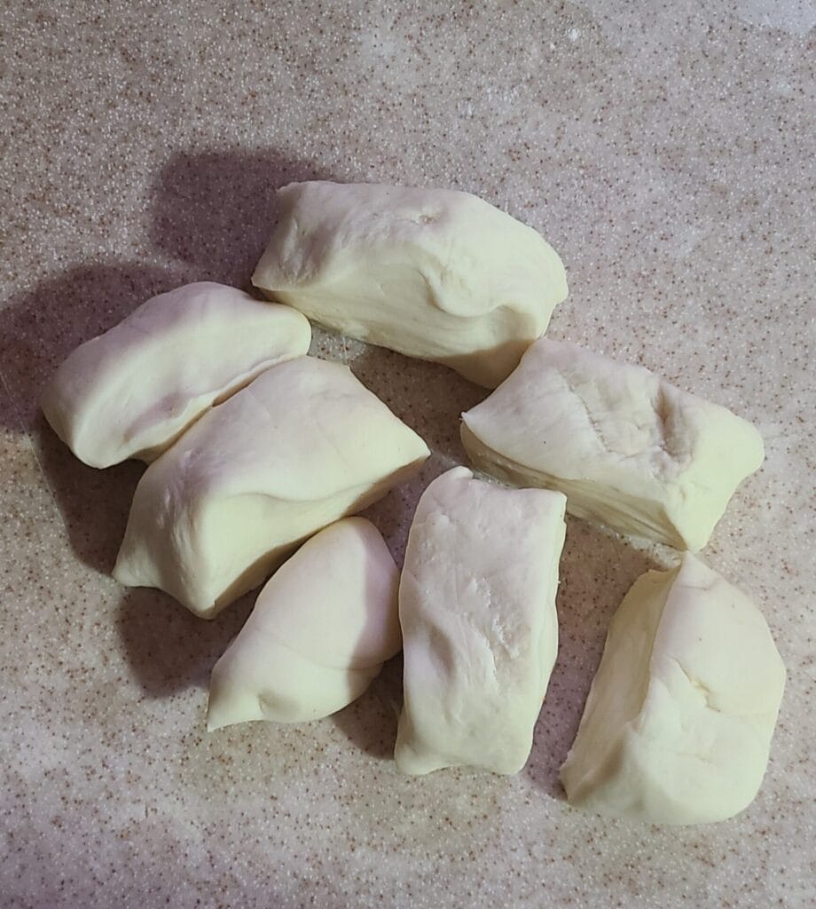 Afterwards, knead dough again and divide into 7 or 8 parts, cover and allow it to rest for 15mins.
